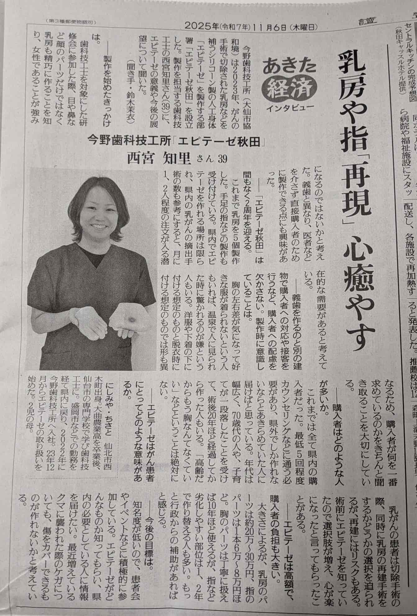 今野歯科技工所 エピテーゼ秋田の 西宮知里(にしみや ちさと) さんが紹介されました。
