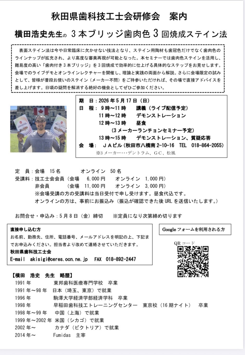【秋田県歯科技工士会研修会のご案内(参加募集)】